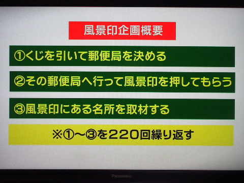 写真は風景印220景の企画の初期に収集するルールを提示したテレビ画面の接写。