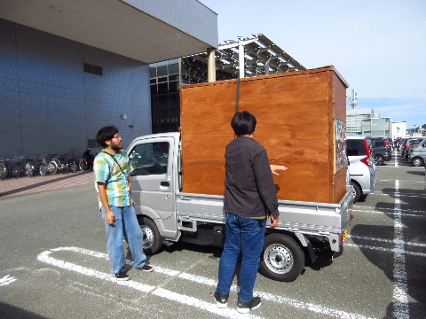 返信した後、予定時刻に岡藤氏に大丈夫そうだとの電話をかけた。岡藤氏は最近制作完了した移動式スタジオ積載の軽トラでうちに来た。状況が何も分からず大変に驚いた様子だったので、昨日までのことを話した。