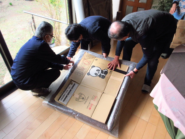 集估館では玄関を通すと大変なので、展示エリアの部屋の扉を開けて直接搬入した。