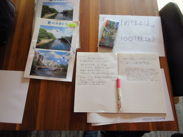 局長による作成で、新川橋から上流を撮影した画像が背景である。
