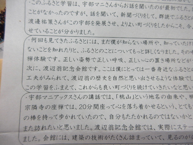 生徒の感想として宇部マニアックスの講話に言及している部分。