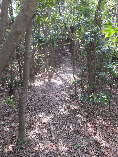 斜面の勾配は殆ど45度で大量に枯れ葉が積もっていて如何にも足下が覚束なかった。