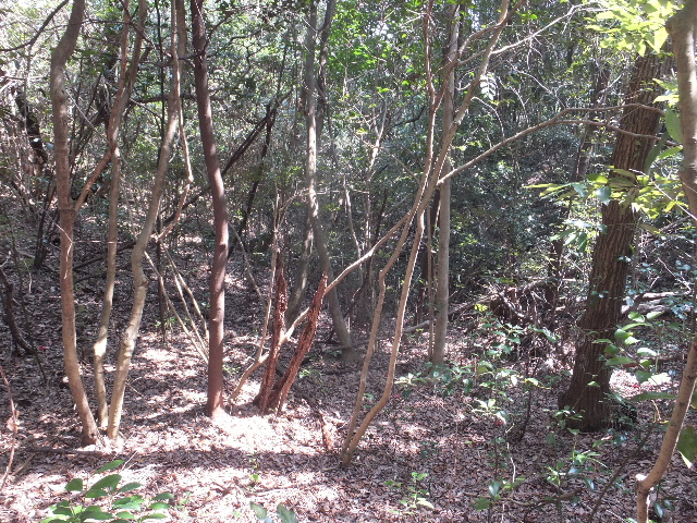 斜面はかなり急な上に落ち葉が多く、手がかりに使える樹木も乏しかった。足下が危ういのでカメラ構えながらというわけにはいかず、ポケットへ仕舞い込んで両手両足を駆使した。