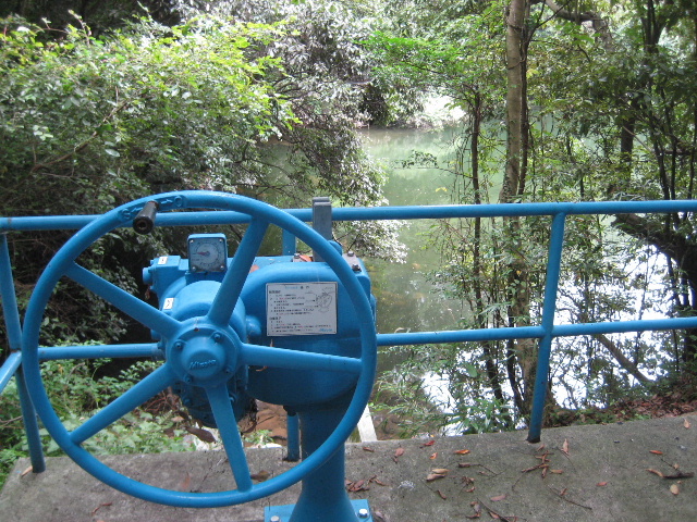 ハンドル操作で容易に樋門を動かすことができる。誰でも簡単に立ち入り出来る場所ながら、ハンドルは施錠されていなかった。