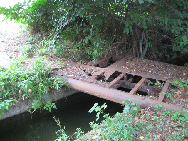 引き返しを迫られた■の直前まで、工業用水の鋳鉄蓋は用水路と夫婦池の間の土手側にみられた。今となっては工業用水は用水路とは別にあの土手の下を暗渠で通されていると思う。