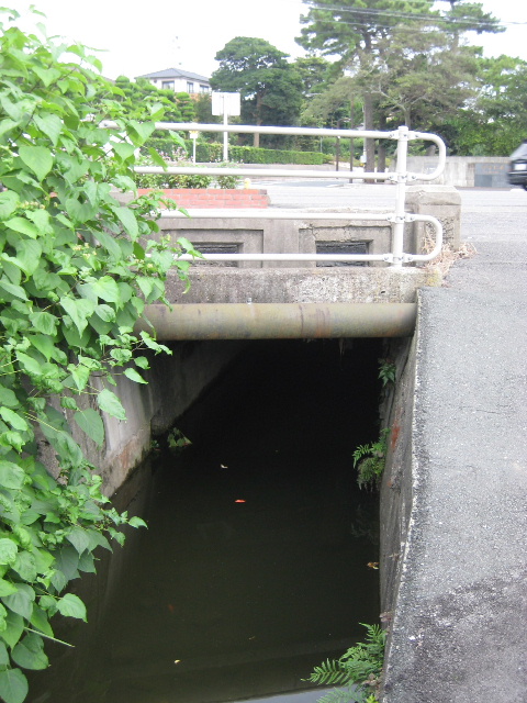 国道を渡り、反対側に導水路らしきものがあるか調べた。それは常盤公園入口交差点のすぐ傍に容易に見つけられた。導水路が国道の下をくぐる延長線上にあるので間違いないだろう。