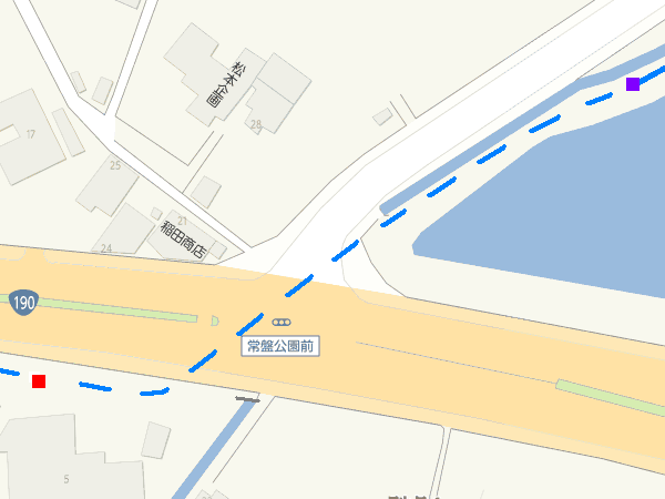 そういう訳で、隧道の先が何処から来ているかの詳細は把握できなかった。市道を自転車で一気に下り常盤公園入口前の交差点にやって来た。国道まであと数十メートルというところで引き返していたので、まずは交差点付近に自転車を留め置き、水路への接近経路を探した。