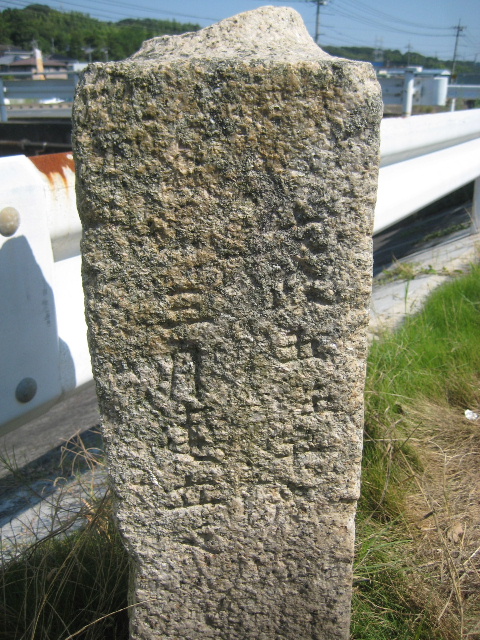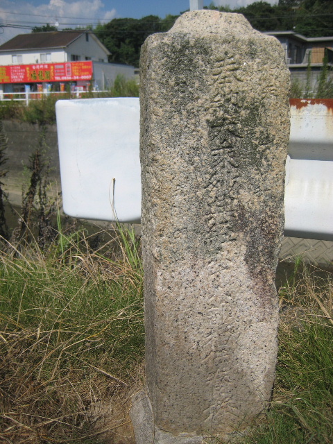 浜田橋から数メートル離れた場所に極めて古い石碑がぽつんと建っている。記事編集日:2014/10/13