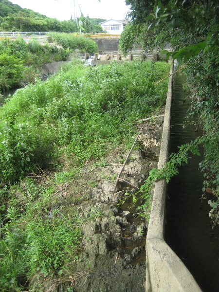 階段を降りた場所のちょうど右岸側に別の河川が流れ込んでいる。