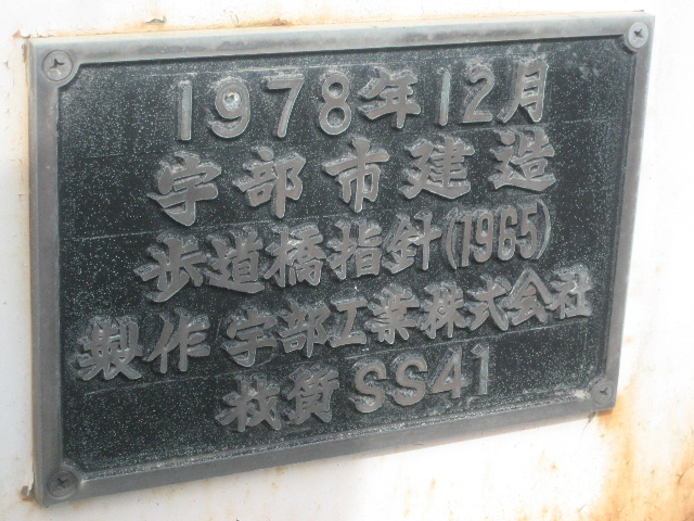 去り際に振り返ったとき、歩道橋の側面に橋の諸元を記録したプレートを見つけた。