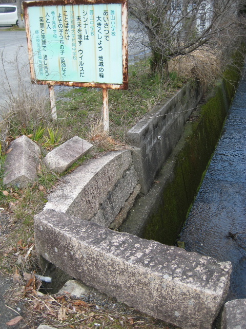一部の石材をボックスカルバートの縁へ置いているのは、通行する車の脱輪防止目的と思われる。