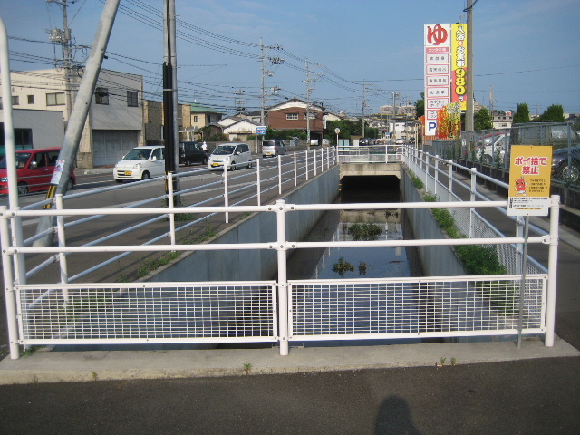 現在向いている方が渡内川の上流側になる。交差部分はボックスカルバートではなく通常のコンクリート床版のようだ。
