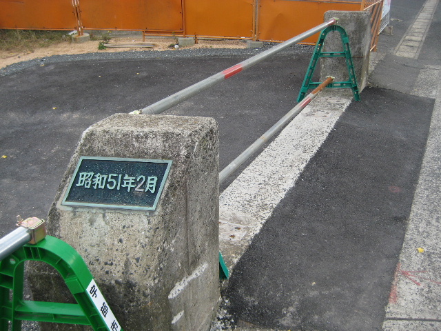 既に欄干は取り外され親柱のみだった。歩行者が誤って進入しないようバリカーが設置されている。
