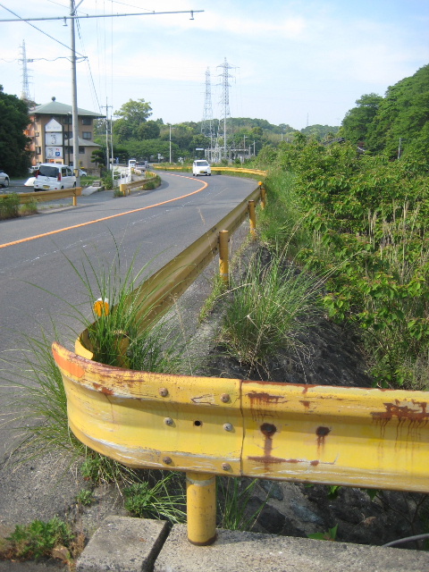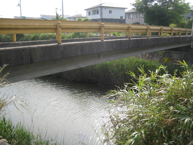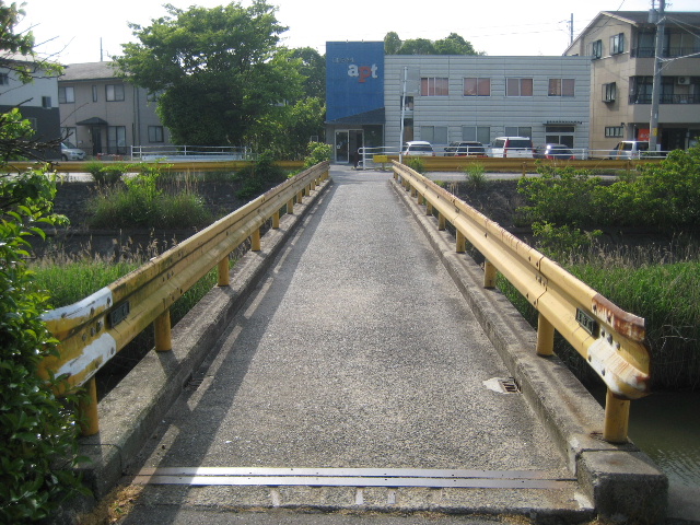 地元住民には申し訳ないが、見るからに貧相な橋だ。平たいコンクリート板で両岸を繋げて転落防止のガードレールを設置しただけだ。
