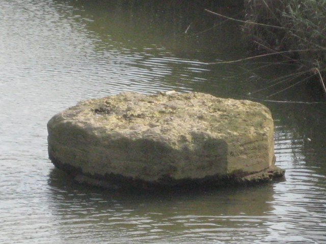 側面に型枠の痕が見えるので岩ではなくコンクリート塊らしい。ここに何があったのかは謎だ。