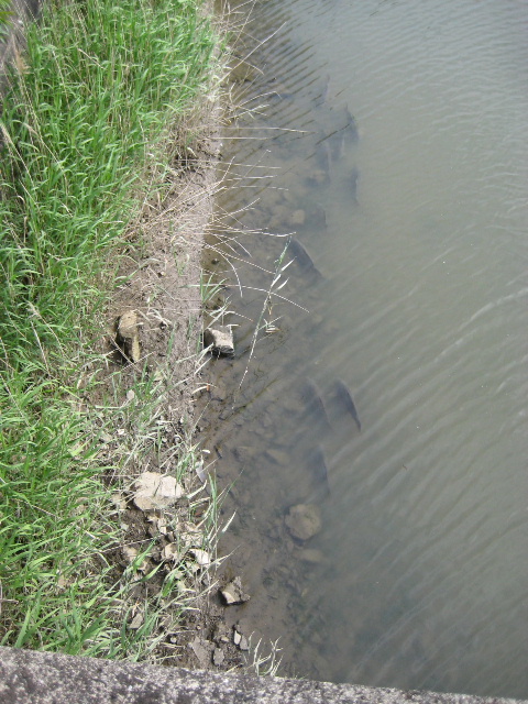 橋のほぼ真下では大振りな鯉が戯れていた。