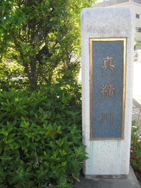 下流側は漢字表記で「真締川」となっていた。