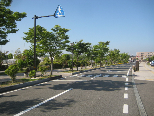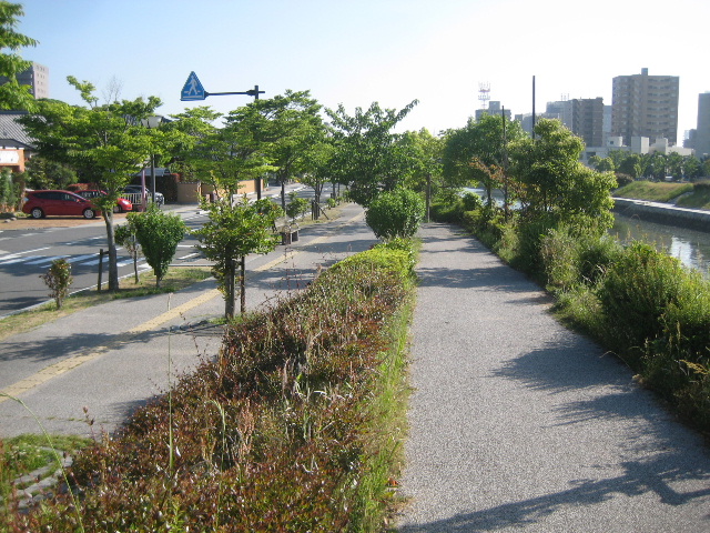 真締川東通り線の歩道部分から撮影。
