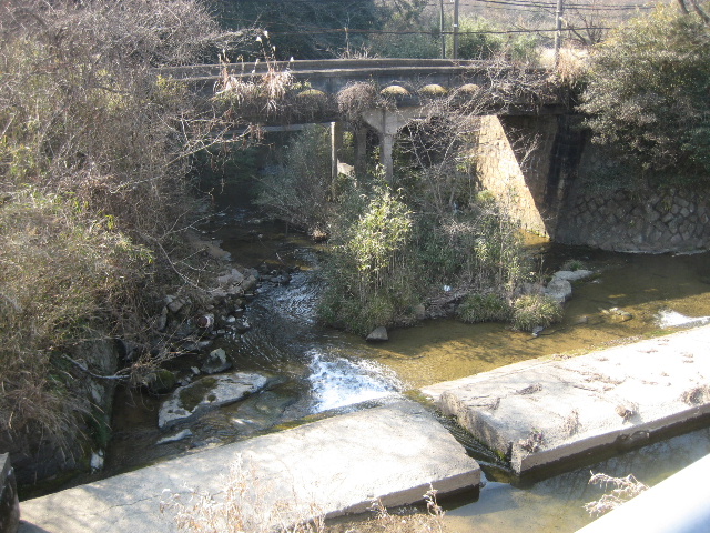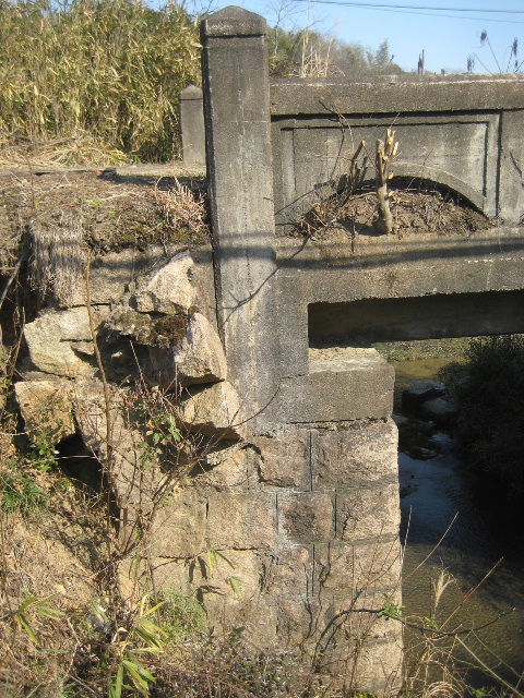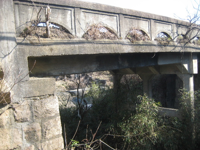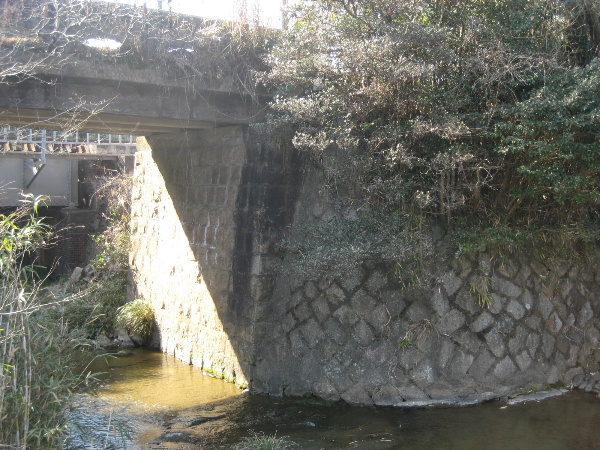 安定した台形をひっくり返したような断面で、かつては両側が石積みだったようだ。後年コンクリート床版を架けたらしい。