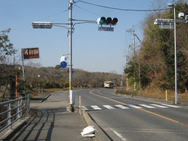 井堰を伝って国道に復帰した。折しも市営バスが通り過ぎていった。