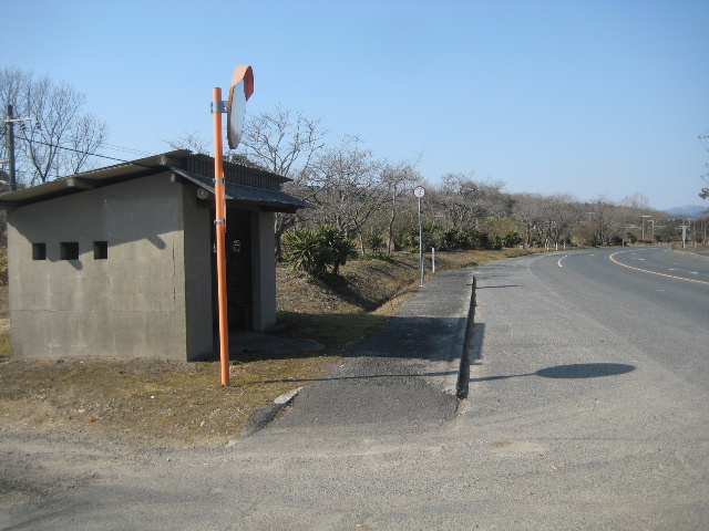 かなり古いもののちゃんと屋根のついた建築ブロック積みの停留所である。