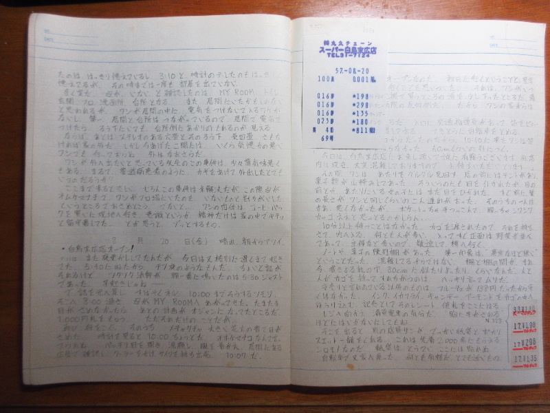 この記事を作成する前までは、開店当日お店には行っていないとばかり思っていた。改めて昭和57年8月20日の日記を調べたところ、殆ど丸久末広店のことだけを詳しく書いていることに気が付いた。この画像だけでは文字が読み取れないので、表題と関係ない部分や個人情報など掲載に差し障りがある部分を除いて誤字も直さずそのままここに転記する。本題から外れて冗長になるため既定で非表示としている。