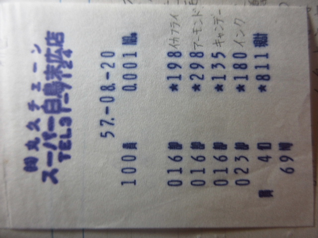 個人商店と違い、レジ係は何人も居るパートの女性がレジを担当するので顔を覚えられなかった。しかしお一方ほど自分よりずっと年上で髪の長い女性がいた。前述のように長い髪の女性に憧れていたこともあり、かなりお気に入りだった。大学生時代、確か小野田の家庭教師から帰りに店舗へ寄って色物のタオル(濃い青色)を買ったときだった。レジ精算するとき、その女性は青いタオルをカゴに移すとき「濃い色だから洗濯するとき気を付けちゃないと他のものに色移りしますよ」と教えて頂けた。当時のレジは商品をカゴに移しながらレジの数字を手打ちするだけで話すことは殆どなかったから、初めて声をかけられて嬉しかったのを覚えている。