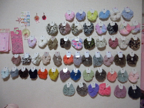 売れ行きが芳しくないのか、2025年頃からフェイクファーのシュシュを店頭で見かけなくなった。かつては主に seria 店舗で買っていた。購入しても自分で使うあてがなく(このタイプのシュシュを使えるほど髪にボリュームがない涙)壁に飾りきれない状況なので2025年秋口からは収集を停止している。どれもタグが着いたままの未使用品なので、フリーマーケットに出すか小羽山小のすくすく教室に持っていくことを考えている。