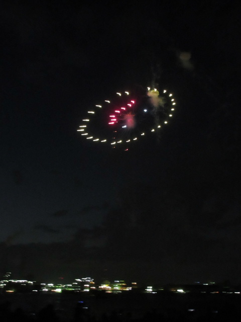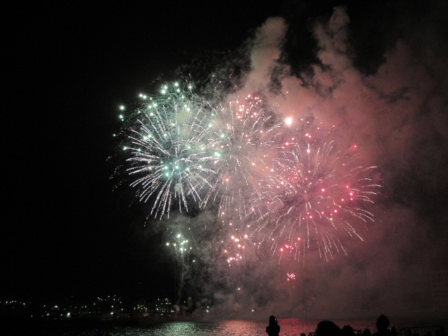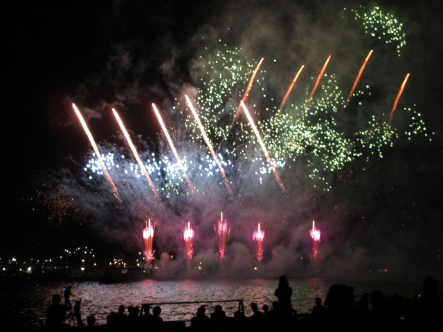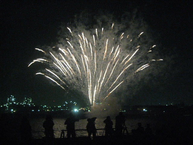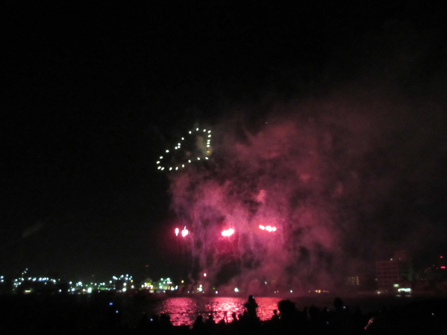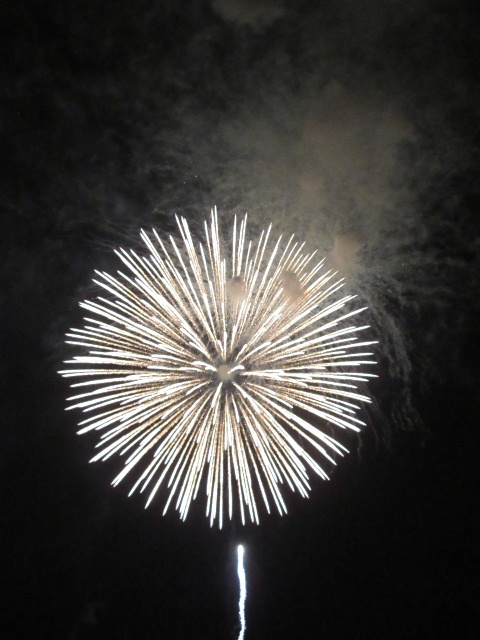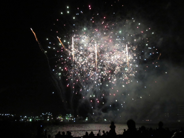 この頃には高機能なカメラを駆使して花火が美しく写るような位置から最適モードで撮影する人も増えています。自分のような数年来使っているデジカメでは如何にも見劣りがします。実際、このとき撮影された写真の半分以上は上に掲載しているよりずっと悪い画質なので殆ど削除しています。スマホを駆使してリアルタイム配信する人が増えてきた今、ブログ経由の配信は如何にも時代遅れと考え、現地配信できる人にお任せして花火の画像配信からは手を引いています。