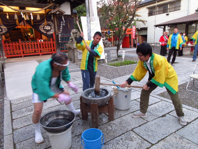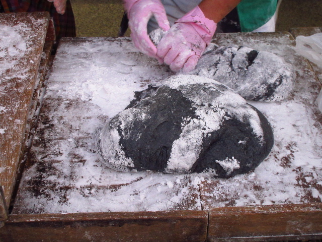 境内で餅搗きが行われる。この餅の特徴は外観が黒いことである。これは石炭の色を象徴しており、黒色は竹炭の粉末によって再現されていた。