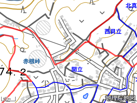概ね桃山配水池のある周辺である。西側に赤根峠と書いているのは確定ではなく検証を要する字名で、防長風土注進案には藤山村の地勢を説明する中で「赤根ガ頭」の表記がみられる。今も居住者があるかどうか分からない場所の郵便ポストに、当該住所として赤根峠と書かれているものが確認されている。