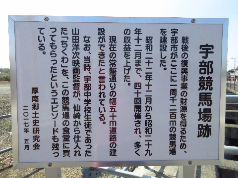 | 出典 | 市道鍋倉迫条線沿いに設置された宇部競馬場跡の説明板に記載されている。