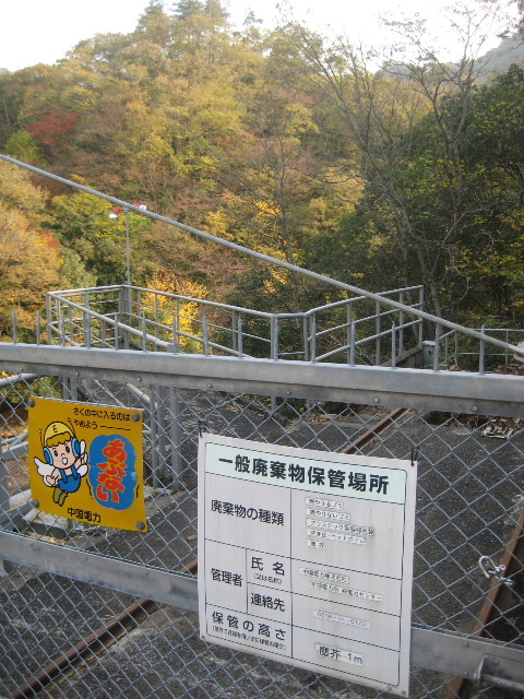 左側には何をするものかよく分からないが、軌道上を行き来できる作業車らしきものが待機していた。ネットフェンスで仕切られ中には入れない。