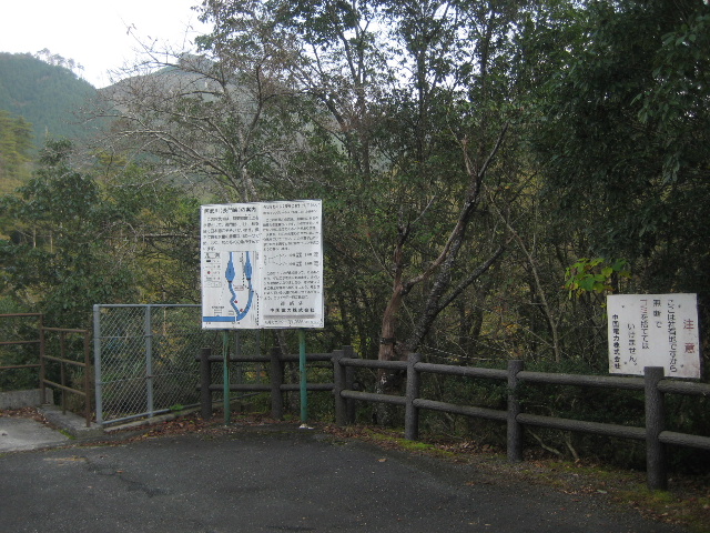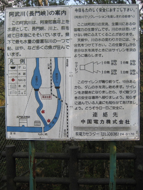 駐車場のダム寄り側に中電が長門峡を散策する人のために作った案内板があった。
