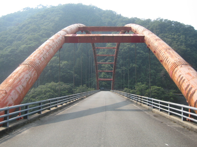 ちなみに大藤大橋はこんな感じの赤く目立つ橋だ。県道のこの先にある阿武大橋も赤色の同様なスタイルの橋である。一昨年もこの橋を渡って長門峡発電所の前を通ったのだった。