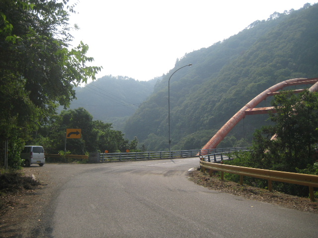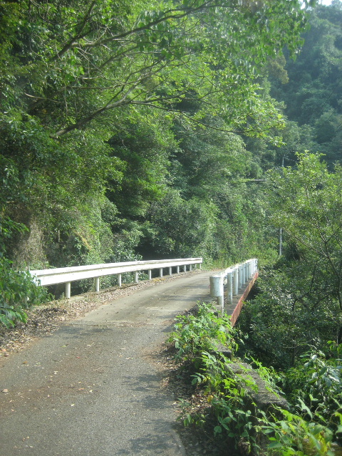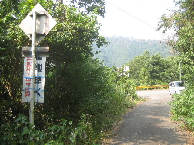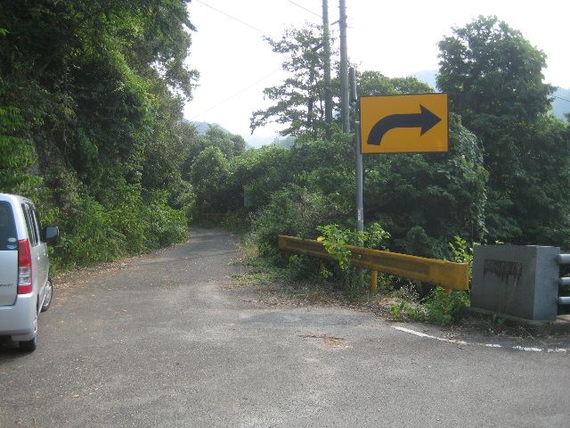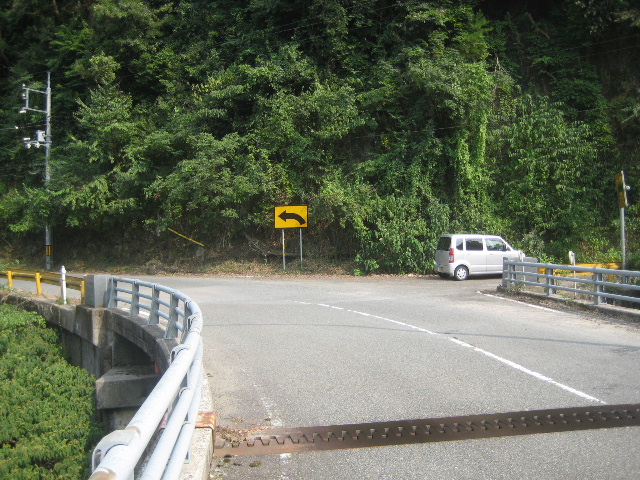 県道を走る車は殆ど居なかった。車を降りて橋の中ほどまで歩き、再び戻って撮影する間に2〜3台通っただけだった。そのいずれもがここで素直に曲がっている。私が向かおうとする道へ入る車は一台もないし、出てくる車もなかった。