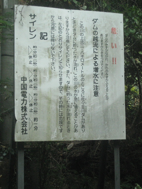 佐々並川ダムは中国電力の保有する企業ダムである。元から観光地まがいにフラッと立ち寄って鑑賞するような対象でないことは、この先にある筈のダムの案内がいっさい書かれていないことからも推察された。行くならそれなりの覚悟が要ると念押しされているようだった。
