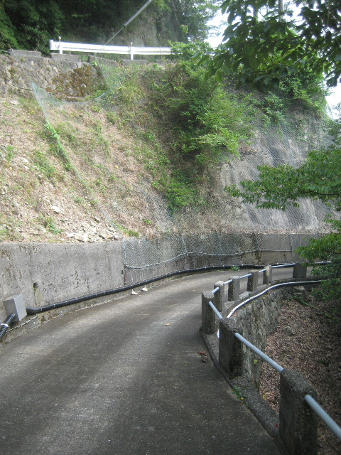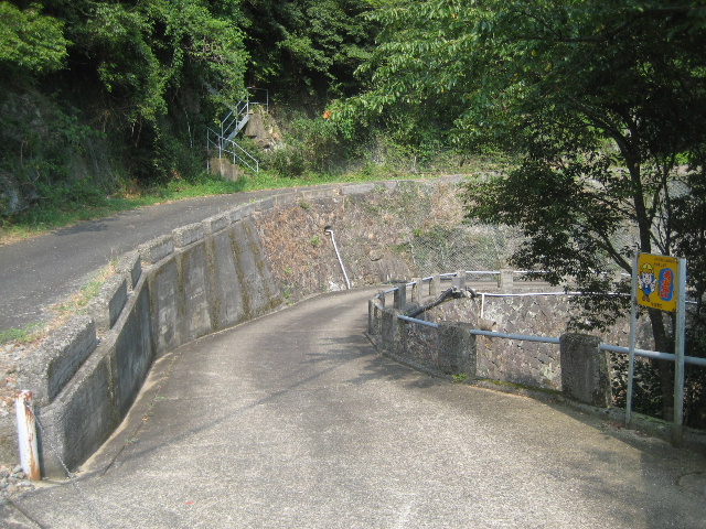 先に伸びるアスファルト路は若干の登り、進入路はかなり急な下りになっていた。