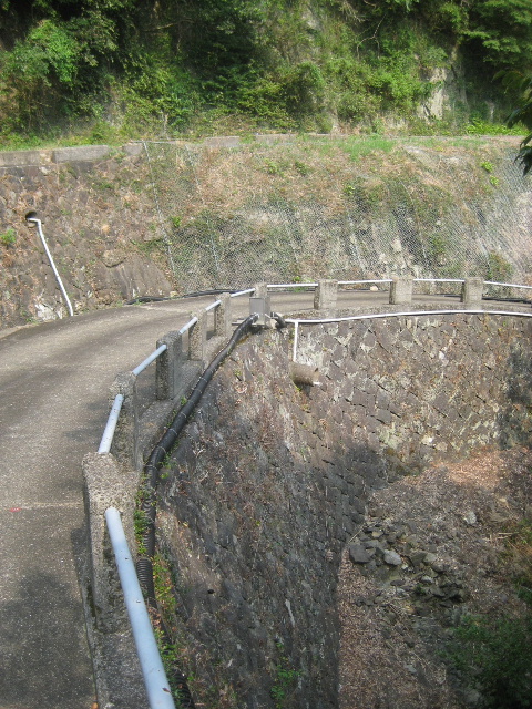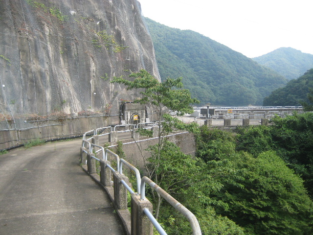 ダム下へ向かう管理道のような通路が見えていた。柵がついているから間違いない。下流側から延々と歩いて行けるのだろうか…