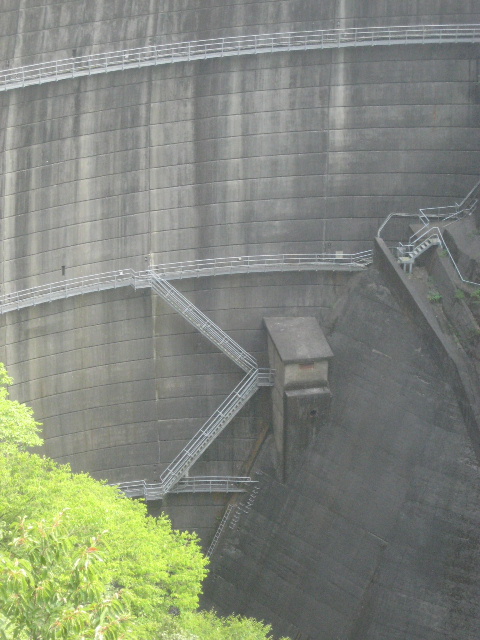 管理道の先行きは後回しで私の視線はダム本体とその下部へ釘付けになった。