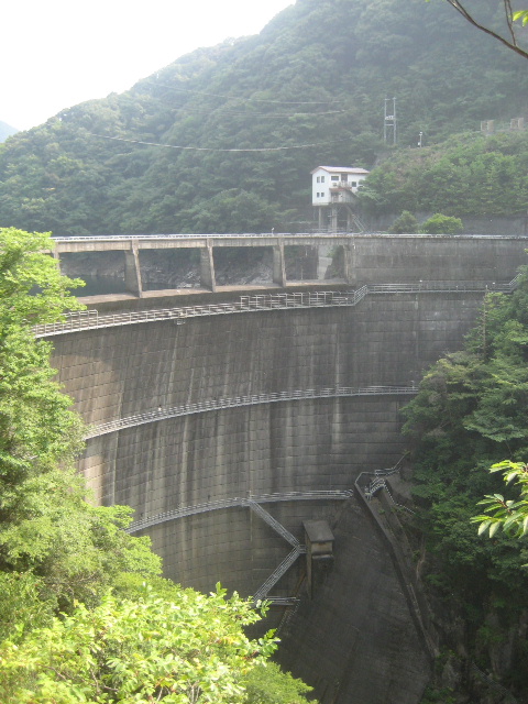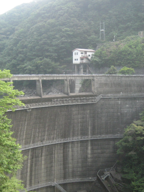 ダム本体の横方向に設置された管理通路の他に、左岸から直接谷底まで降りる道があるらしい。