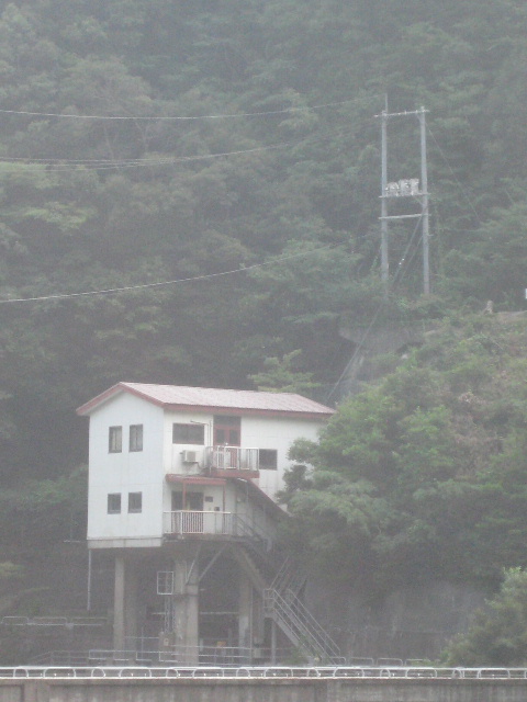 これもダムに関連ある何かの施設だろう。延々と上の方まで続いているようにも見える。