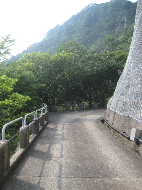 期待的な予想に反してこの管理通路は下流まで繋がっていないと思う。恐らく通路と柵はあるものの下流の途中で行き止まりになっている。佐波川ダムの管理区域内に見える通路がそのようになっていたからだ。