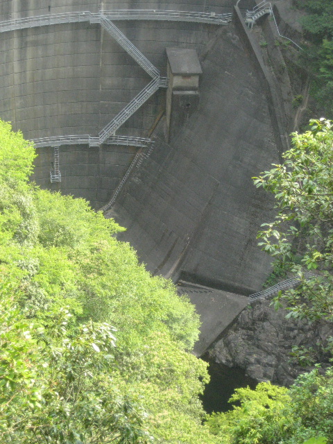 視座が上がっている分、目の前を遮る樹木がない。管理通路の門扉前から眺めるより深いところまで見える。ダムを横から眺めるなら今までで一番良い撮影場所だ。