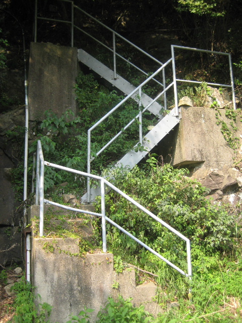 間上発電所の階段みたいに延々と上まで続いているわけではなかった。階段は2往復した後にそこで途切れていて、荒れた沢の一段高い場所にコンクリート桝のようなものが見えた。