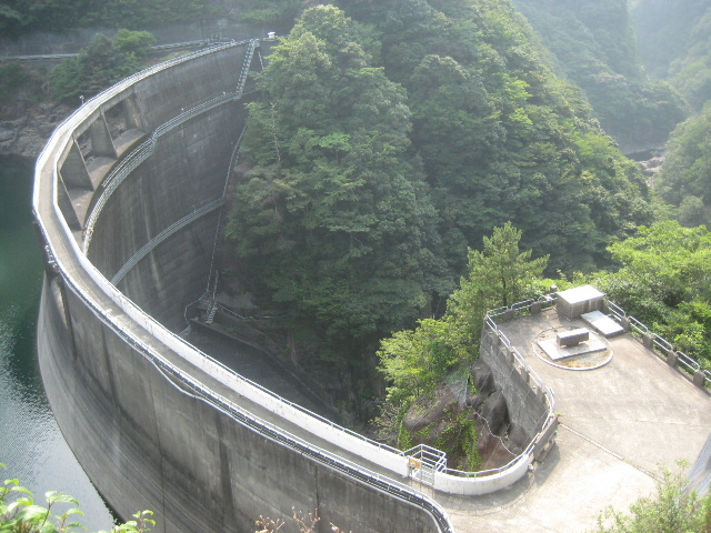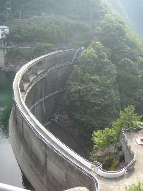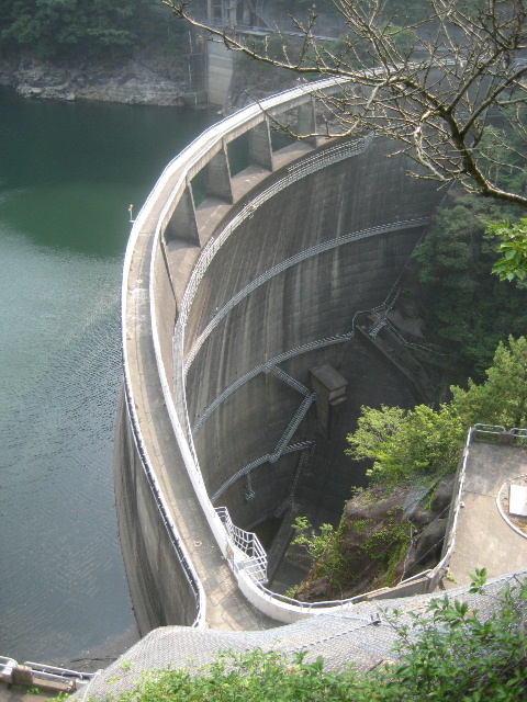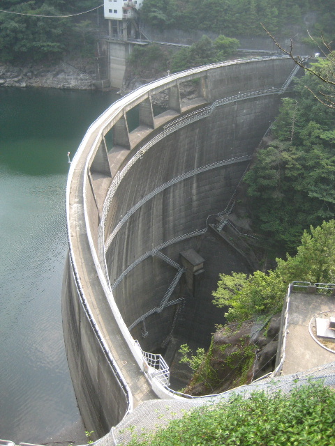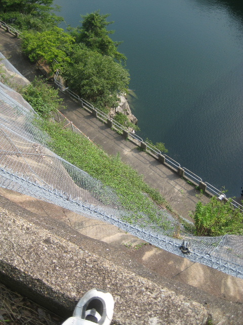 コンクリート階段には鋼製の手すりが着いていたので、ある程度信頼して身体を預けることができた。もっともそんなに前のめりにならなくとも視座が充分に高いのでダムを見下ろすのには好適だった。