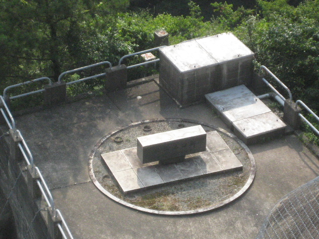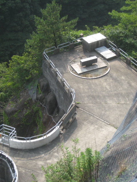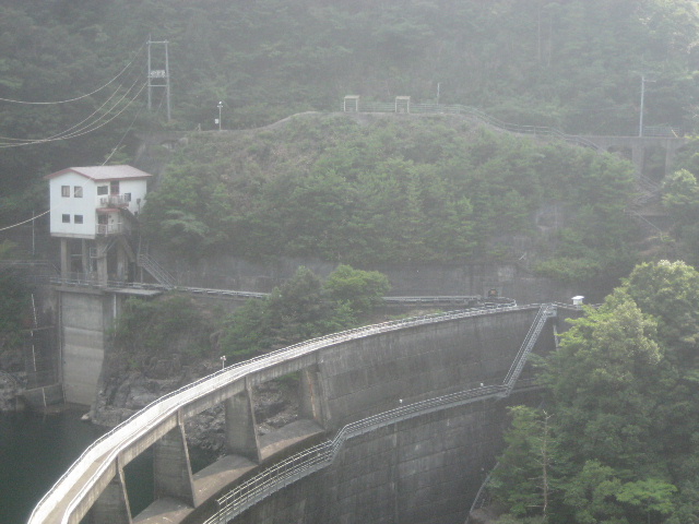 塔の真上にダム管理所が建てられているようで、その造りも凄い…建物と同じくらいの高さのコンクリート柱を建ててその上に載っているような状態だ。何でまたこんな構造にしたのだろう…