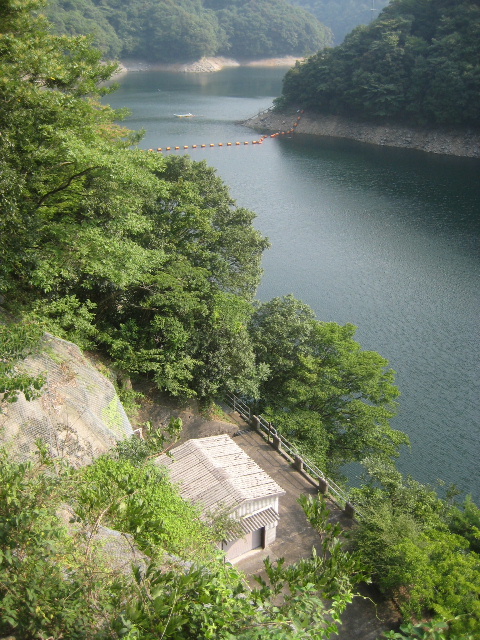 ダム底を眺める限界だ。右へ移動すると横から張り出してくる木の枝に遮られた。