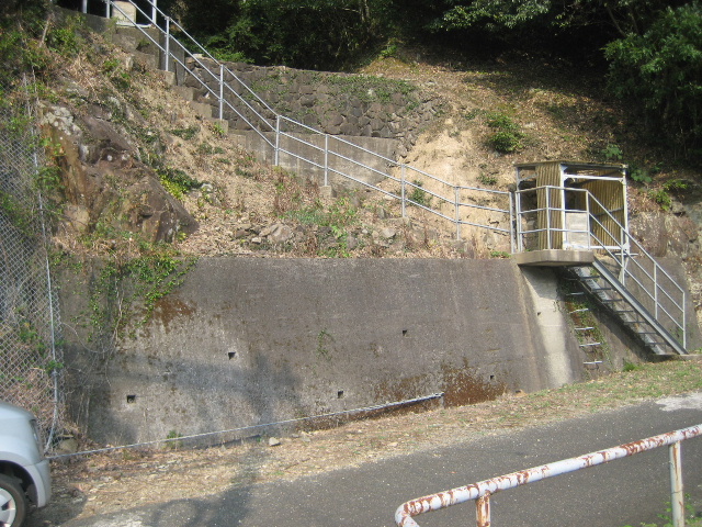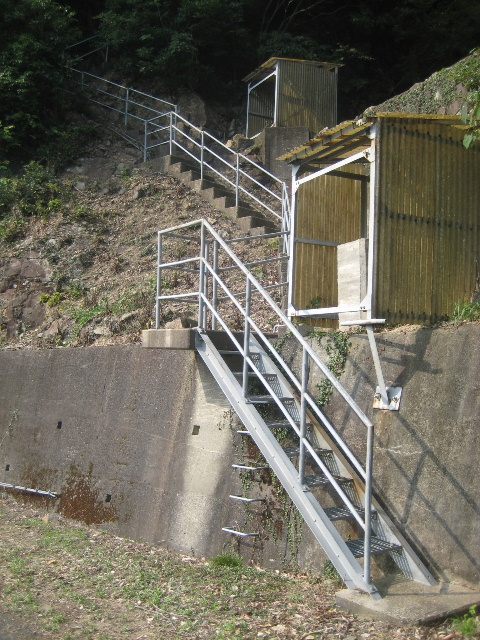 その斜面付近をズームする。斜面には昇降用の鋼製階段が設置されていた。