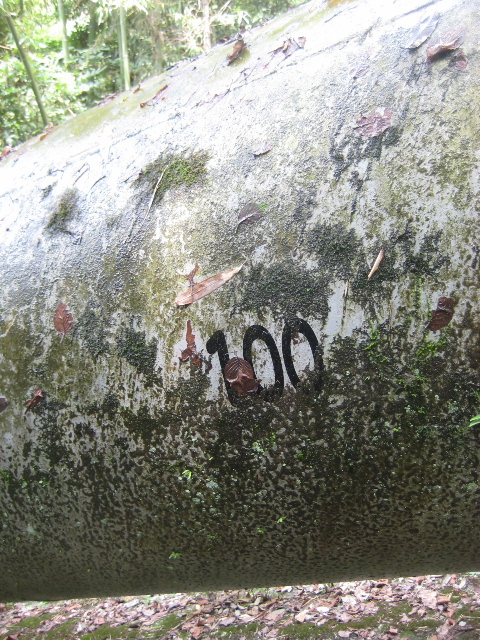 たまたまなのか、ここまで来た作業員が確認用に拭ったのか、数字のある部分だけコケが剥がれているように見える。[11:26:49]